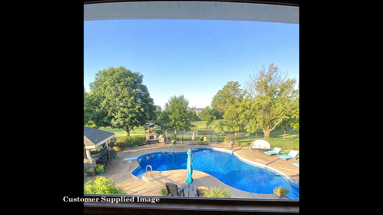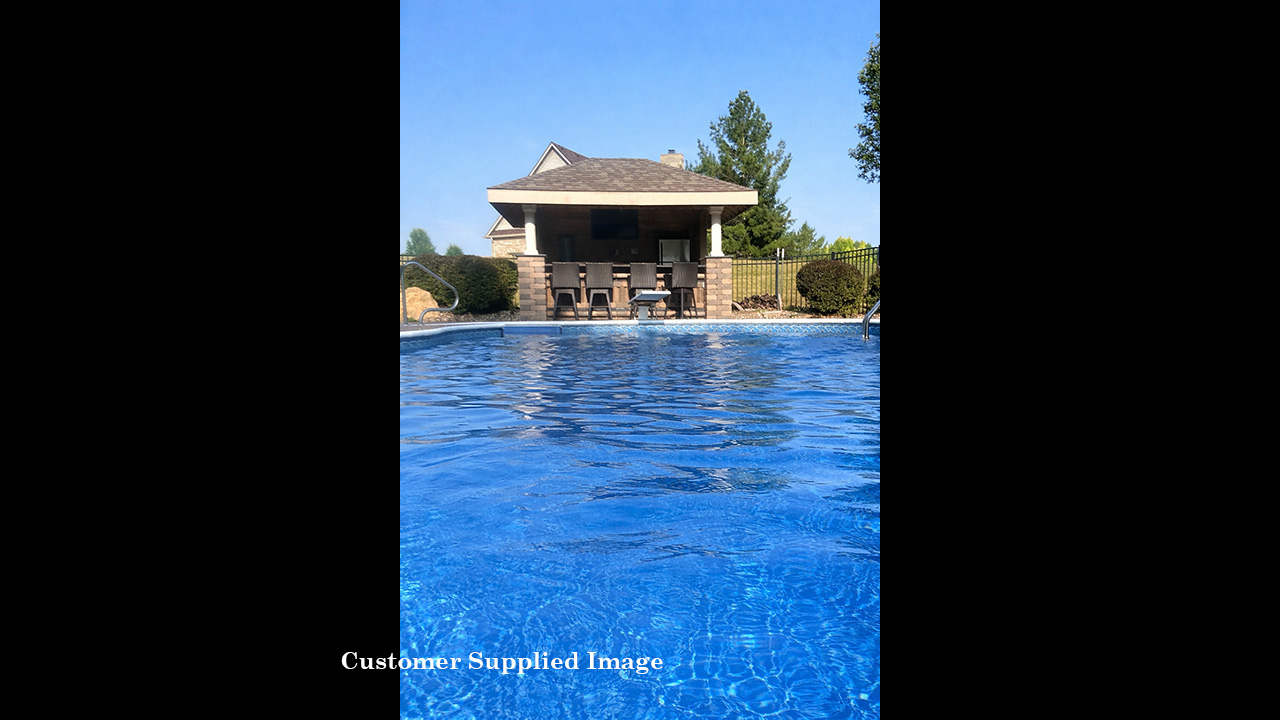 a custom-designed inground pool (new liner in 2019) with walk-out steps in the deep end, a